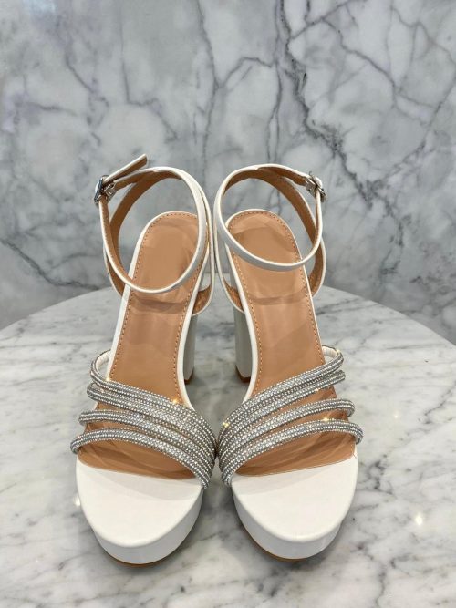White Crystal Strap Sandals