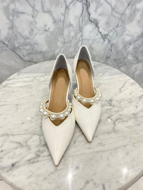 White Pearl Strap Pumps