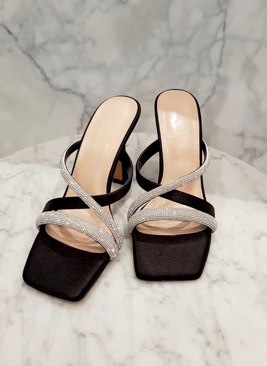 Black Crystal & Satin Slip On
