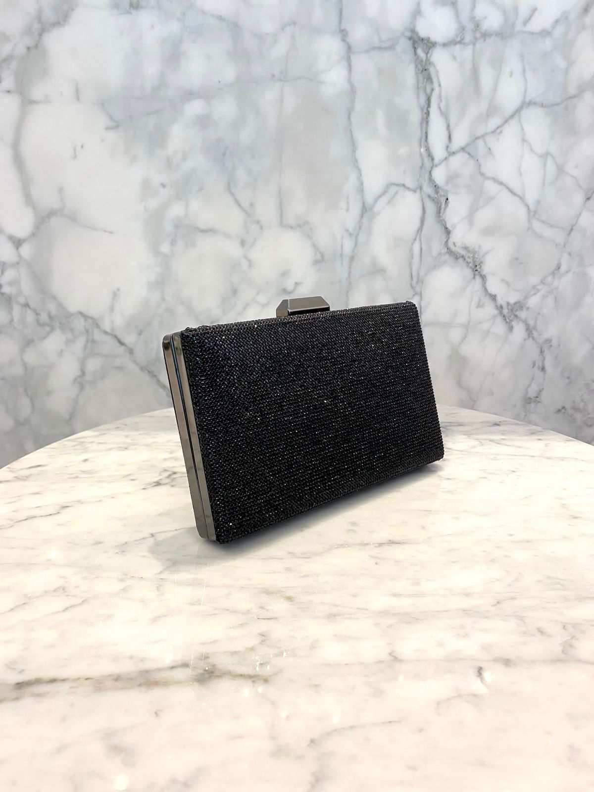 Black Rectangle Crystal Clutch